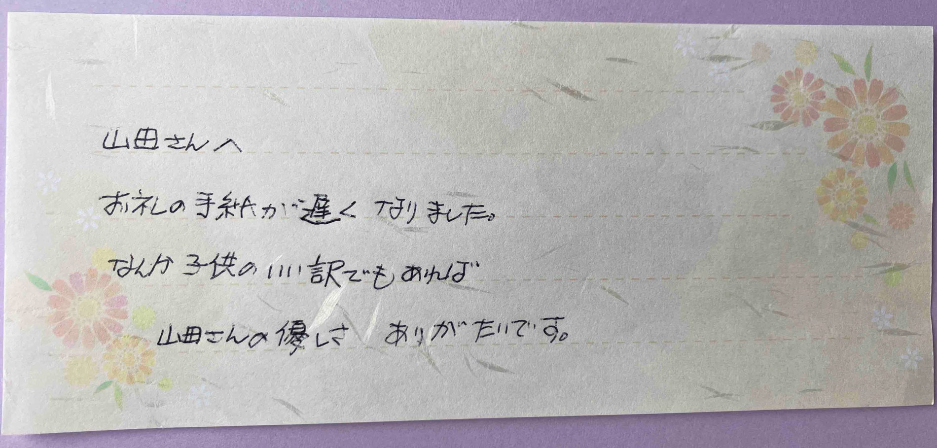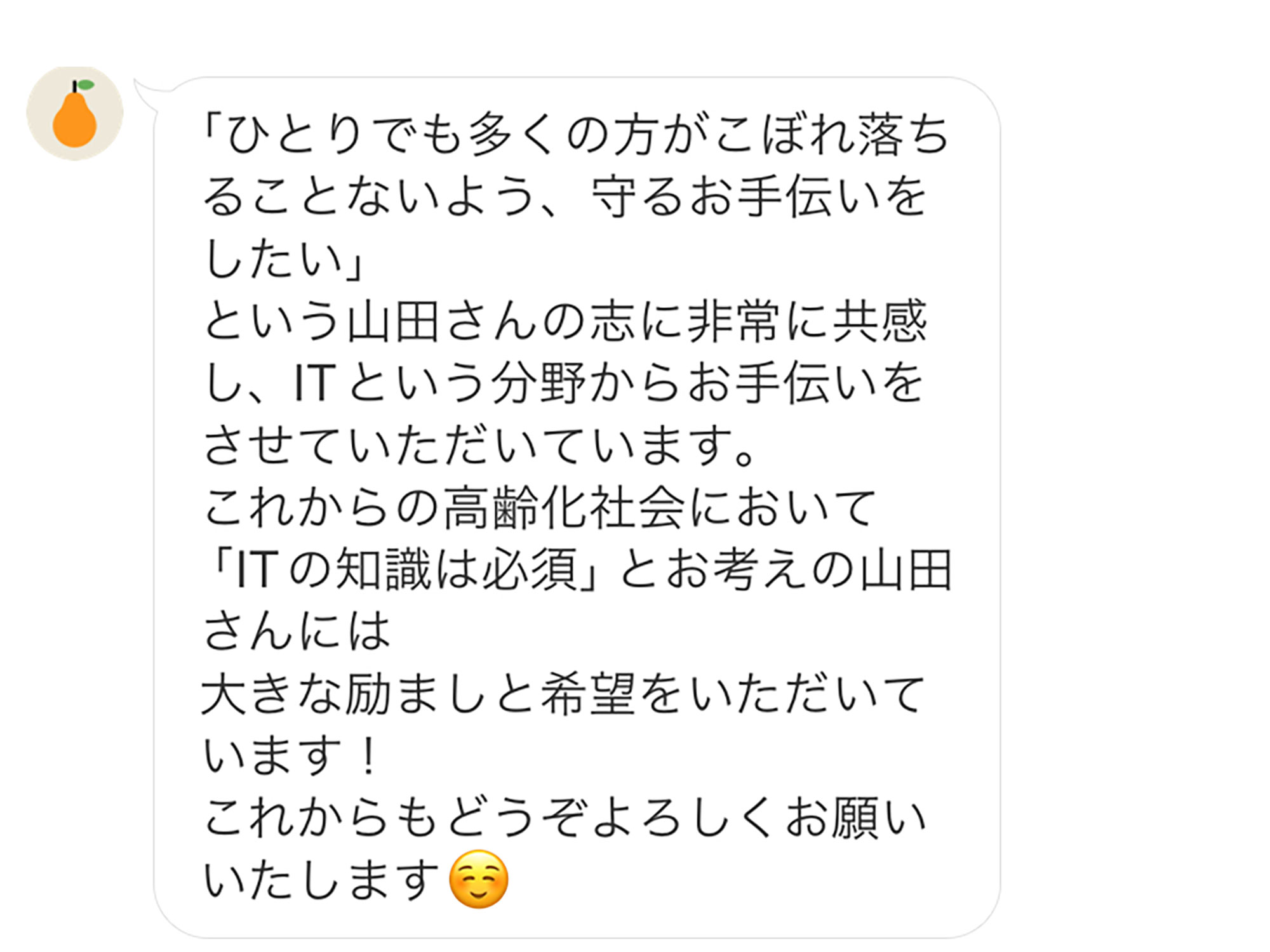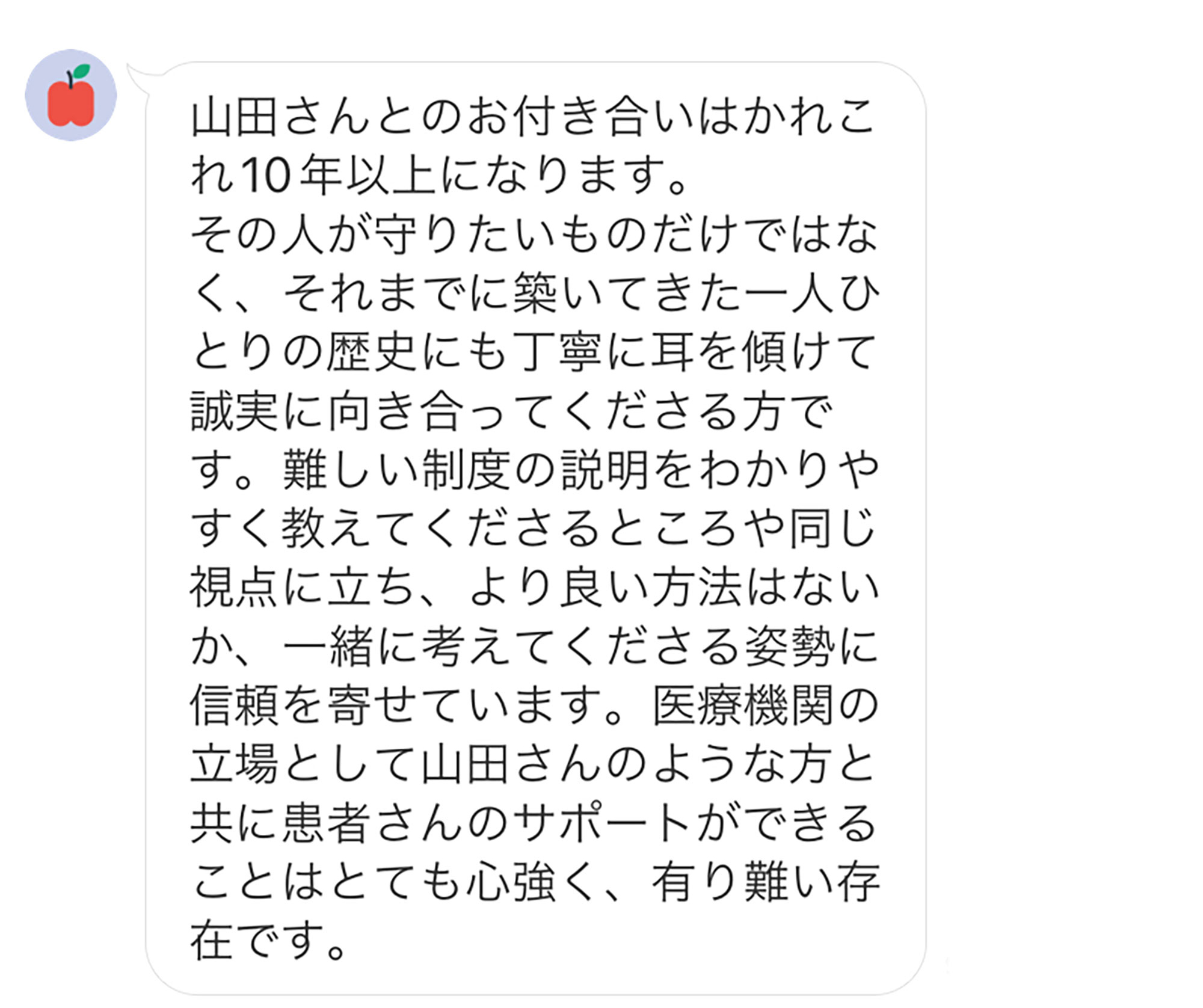 山田さんの歩みはいろんなところで結実しています(弁護士/Oさま)